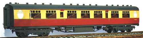 Although these coaches were in production for a relatively short period they came to be as much recognised as the earlier Gresley designs. They had steel flush sides, straight roof, an internal arrangement whereby no passenger had to walk past more than two compartments to reach an exit door, but in a reversion to earlier practice on this and other railways, no cross vestibules at the ends of the coach. The graceful oval windows were distinctive. These carriages had square cornered windows, which rapidly corroded in service. 2″ wide beading (Comet C61) was fitted as a repair. Subsequent builds to the same diagram (Comet E16K) had round corners to the windows to avoid corrosion.