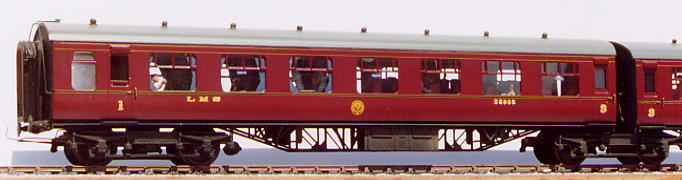 The LMS did not make great use of articulated sets, largely due to the disparate needs of the operating divisions, some of which had rather severe weight restrictions. Three types were introduced which were assembled as three different pairings. This kit can be used for either the TO+TO to D1966 or the TO+CO to D1967, which were externally identical. The other pairing for the BTO+TO to D1965 is available as COMET MODELS sides pack M65S or full kit M65K. They were useful coaches which operated in high density and excursion traffic as well as express passenger workings. Their appearance was distinctive not only by their being articulated but also because they rode on centrally trussed underframes. All were built at Derby.