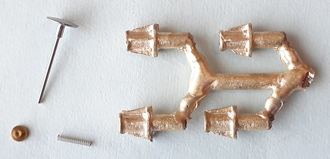 Lost wax cast brass bodies with turned steel heads.