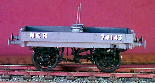 The standard NER single bolster wagon, usually seen in pairs but could be in threes or fours as traffic demanded. Seen nationwide carrying a wide variety of long loads. Over the years the brake gear and axle boxes were updated allowing the load carrying capacity to be increased to 10 tons. Requires split spoke 12mm wheels, bearings, couplings, paint and transfers to finish.